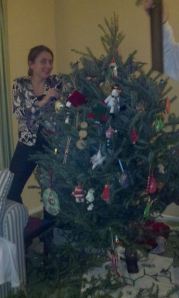 - Decorating the tree … and then it falling down, leaving me to hold it up while B and my dad attempted to trim some branches off the bottom so it’d better fit in the tree stand