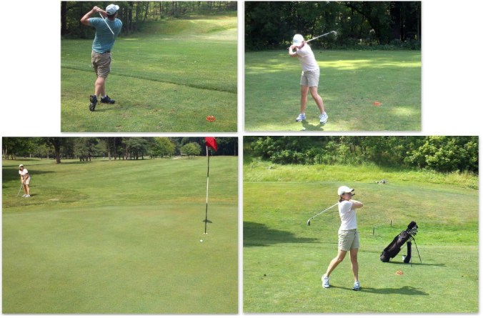 Saturday was a busy day. Well, busier than my usual Saturday which typically includes working out, grocery shopping and maybe a nap. B loves golfing and has been dying to drag me along with him, so I finally agreed to go with him. We woke up early (for a Saturday) and hit a local golf course and played 9 holes. Yes, I played 9 holes of golf. And if you look at the photos, it looks like I actually know what I’m doing!