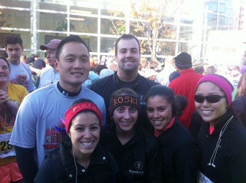 B and I flew into NY early Wednesday and spent some time on the couch doing work – I worked remotely most of the day (Boring, yes) but got to take a few breaks to enjoy my mom’s homemade soup for lunch (AWESOME) and even take my dog for a walk amid getting some work done. Wednesday night, my mom made some baked ziti (sorry, no photos were taken) and we had a few friends over for a pre-Turkey Trot pasta party! The last time I was in town, Jane and Melgar and I ran the Turkey Trot – so of course we had to do it again this year. It was great to see these ladies (and Melgar’s boyfriend Jon) for a short while and catch up on high school gossip and all that had happened since our last reunion.