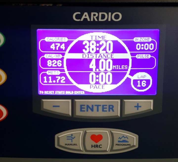 Saturday: 4.42 miles on the treadmill. It was sunny but cold outside so I decided to take it easy and watch some Netflix while working out.