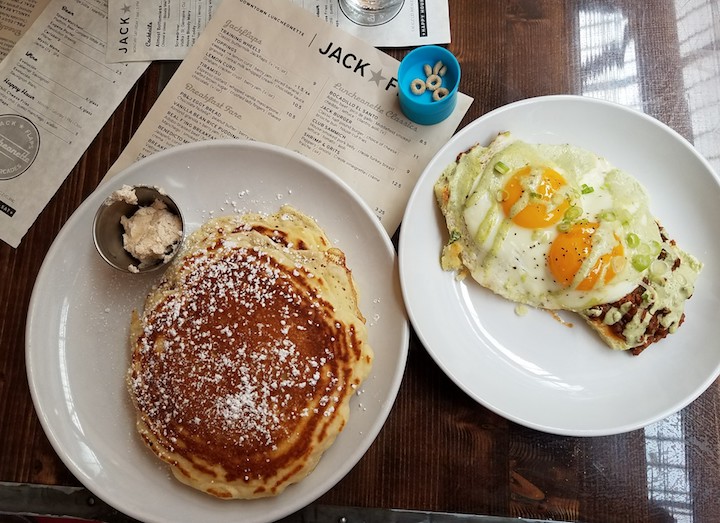 And then, some brunch. We feasted on some Mexican Eggs Benedict and shared a pancake as well.