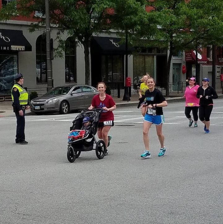 I wanted to “take it easy,” knowing I had a half marathon the next day; but of course I took it a little faster than I would’ve liked. About 1 mile in, I found fellow Ambassador, Sara, running with her boy and her stroller! We ended up running the rest of the course or 4ish miles together. It was great to have someone to talk to for those last miles – it made them fly by!