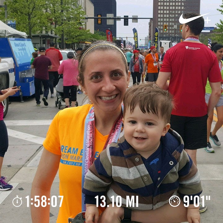 I finished as strong as I could and was pleased to find out that my finish time was 1:58:07. Was it the PR I was hoping for in the weeks ahead? No. But it was under 2 hours, a solid race for my first post-baby half marathon, especially considering the humid conditions.