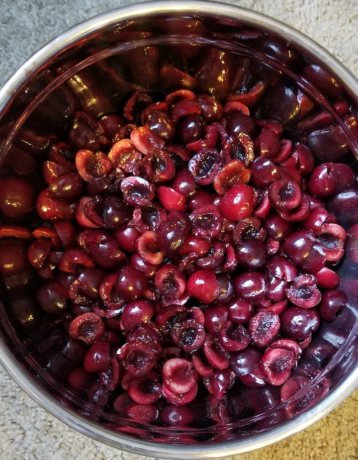 There were also sweet cherries this weekend. Northwest Cherry Growers sent me a lot of cherries to try out, and I mean LOTS of cherries. Which meant removing lots of pits and stems. Thankfully B didn’t mind 😁