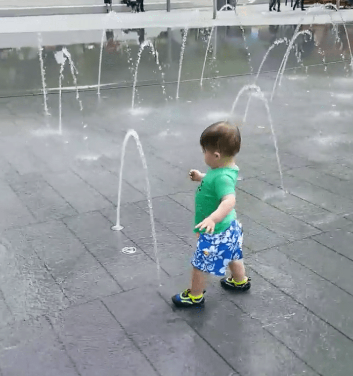 And then, some time in the splash park downtown. He loves running around in the fountains and was soaked!