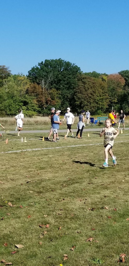 Saturday morning started with a run with my sister-in-law Mary. We ran to our niece’s cross country meet and got to watch her run. I unfortunately took a fall during the run and bloodied up my knees … but my niece ran her 1.5 mi pretty well in the hot weather!