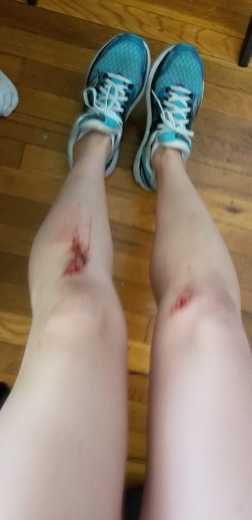 This is more of a lowlight I suppose, but I ended the week with some skinned ones.  On Saturday, I ran with Mary to our niece’s crosscountry meet. On the way there, I took a pretty good fall, twisted my ankle and skinned my knees. I’m okay, but it was a bloody mess!