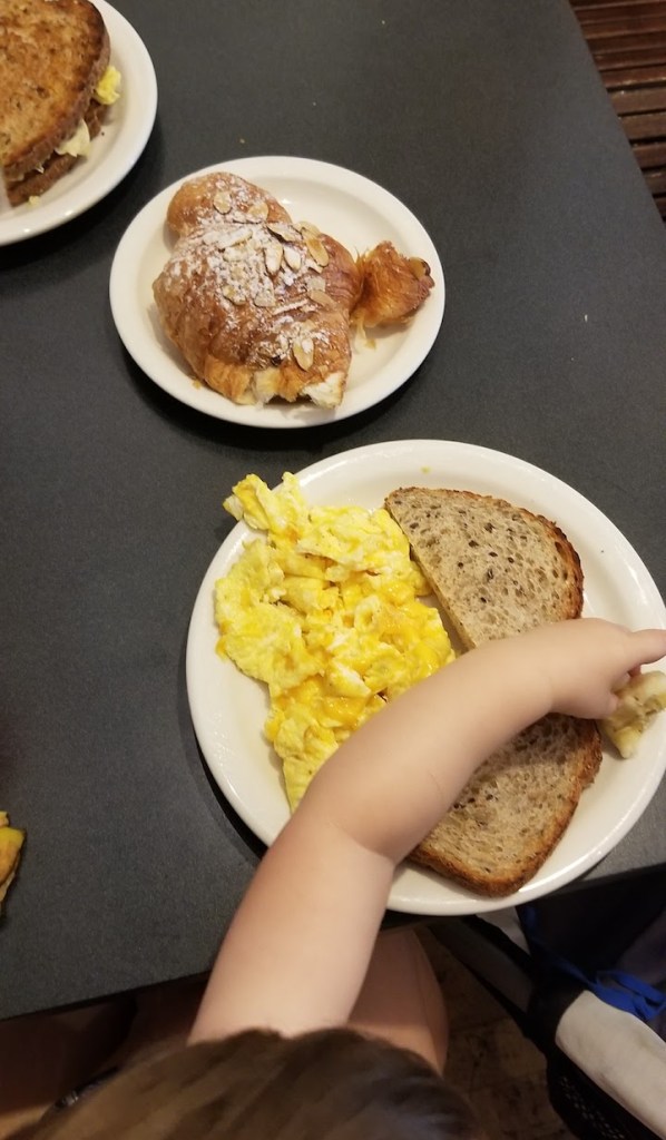 Going out to eat. And by out I mean OUTSIDE. We lucked out with the weather while we were in town and got to enjoy a few meals outdoors. I find patios much more FW-friendly (we can get up, walk, be loud, etc.) and Annapolis had quite a few of those. My favorite restaurant while we were there was The Iron Rooster- we actually ended up going there twice – once for brunch and once for lunch – and they even had a kids menu and crayons for FW to color with.