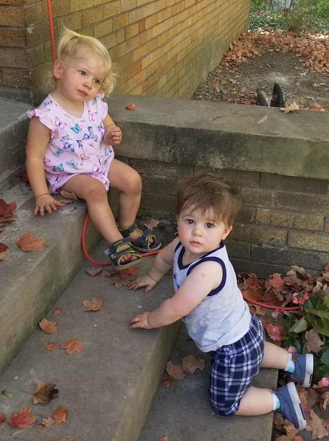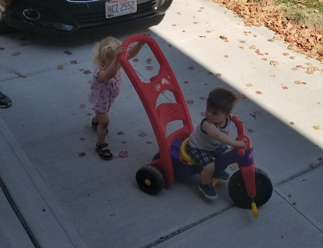 After our walk, we had lunch plans with Dave and Anson who wanted to see the new house. They brought us Aladdin’s, some of my favorite Lebanese food! Then, their daughter, Celia, and FW played for a bit.
