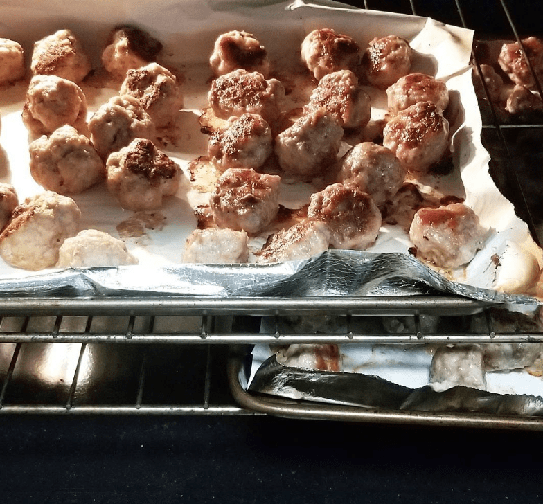 Without a baby and husband, I made meatballs (well, sorta – B had already gotten the meat ready – I just balled them all up and cooked them ) …