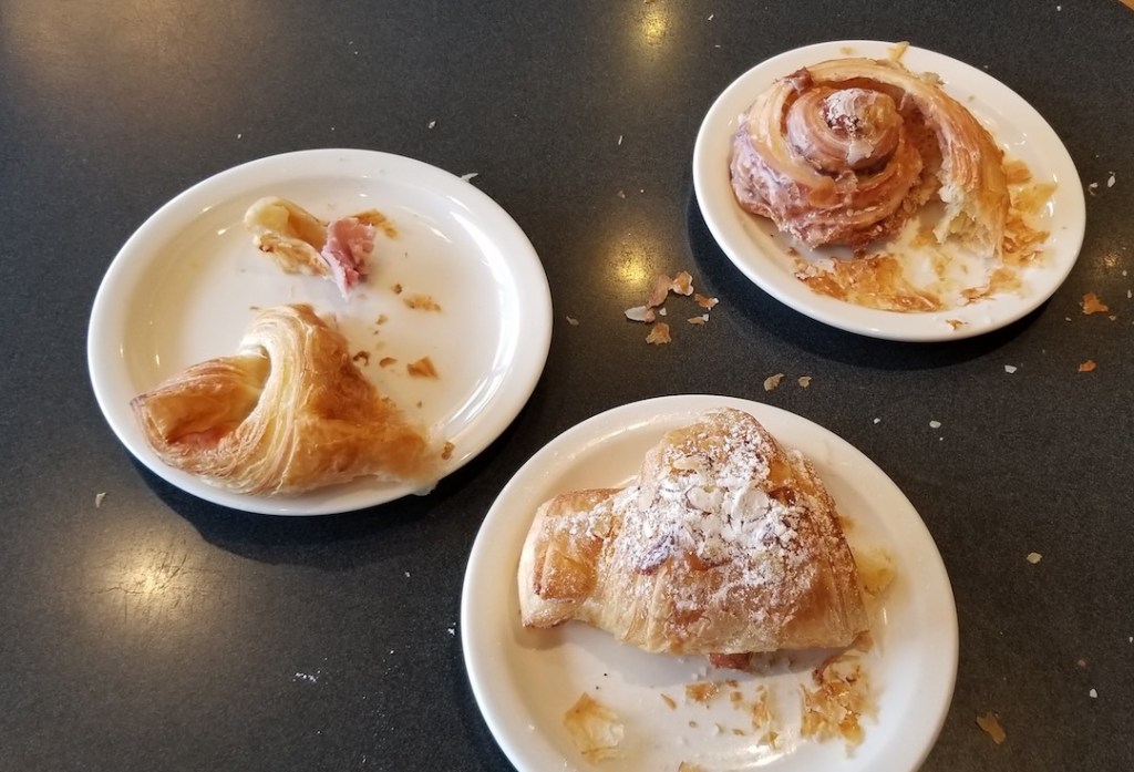 Saturday morning started with a walk to Stone Oven for pastries and Phoenix for coffee. FW has started liking croissants so we split three of them – forgot to take a photo until after the first few bites. They were delicious – cinnamon, ham & cheese and almond!