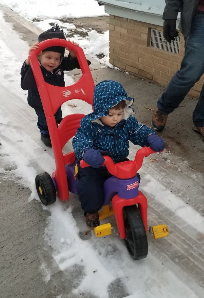 Played outside “in the snow” with FW and his friend Celia (full disclosure: FW actually was in a super clingy mood and didn’t want anything to do with said snow except when Celia pushed him on his bike).