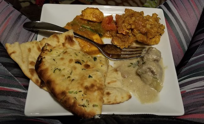 B got home late and thankfully brought us Indian food for dinner! With FW in bed, it was eaten on my lap while we watched some Glow on Netflix.