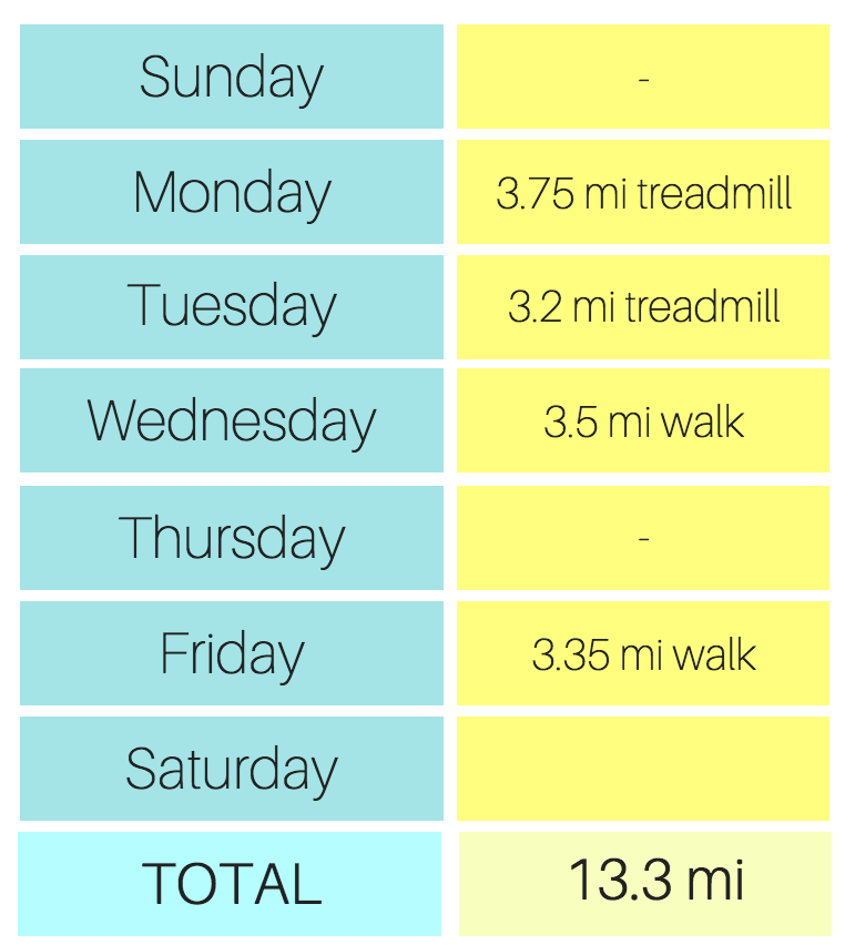 So- don’t be surprised by the lack of runs here. And truth be told – the two “running” days here were actually run WALKS with the emphasis on the walk.