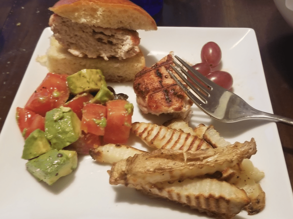 B also made dinner – taking advantage of the springlike weather, he decided to grill. It was the perfect meal for the weather!