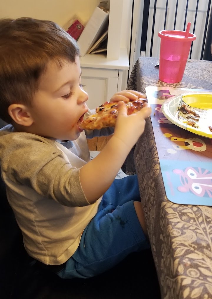 It started with Friday night pizza. I had to work late (work is a little cuhhhhrazy right now), but it was all worth it when I got home and got to enjoy pizza night with my boys. Especially since FW ate nearly a whole slice!
