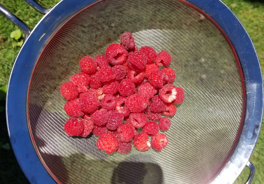 It was a late night (for me), but thanks to having two kids, Sunday still started early (LM got up at 4 am to eat … and again several times before FW woke up at 8). After my parents left, we got to go raspberry picking at my brother and sister-in-law’s house!