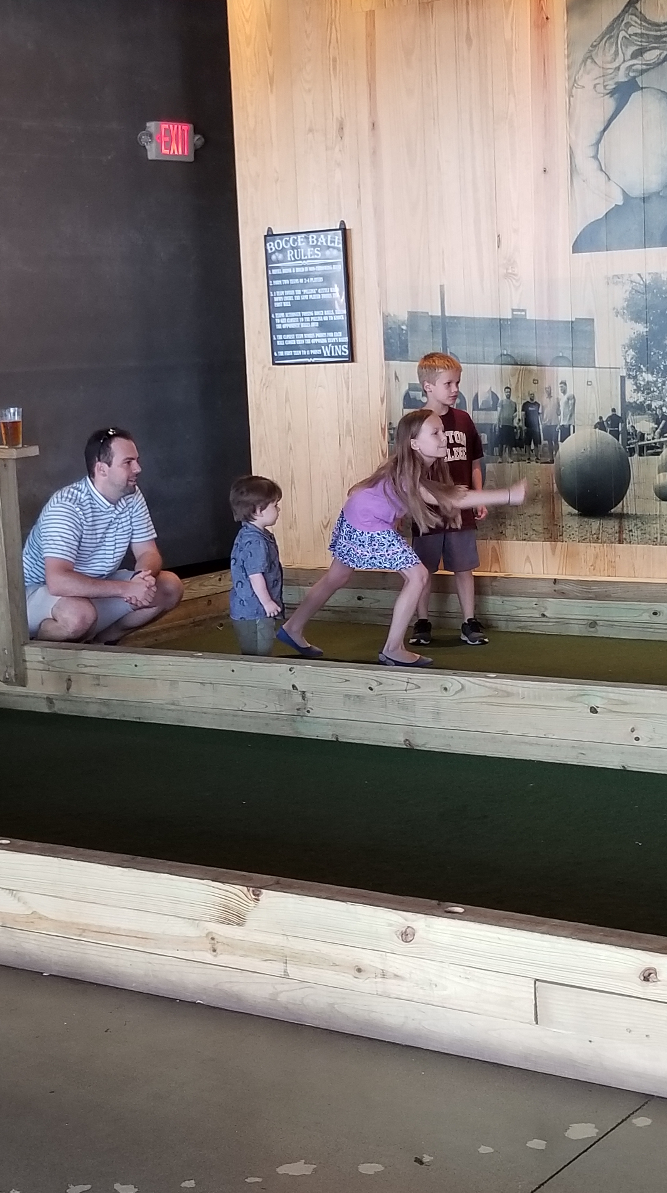 Friday night started with an impromptu birthday celebration for B’s brother. We went to the Flats for pizza, beer and bocce with the kids to celebrate FW’s uncle John.