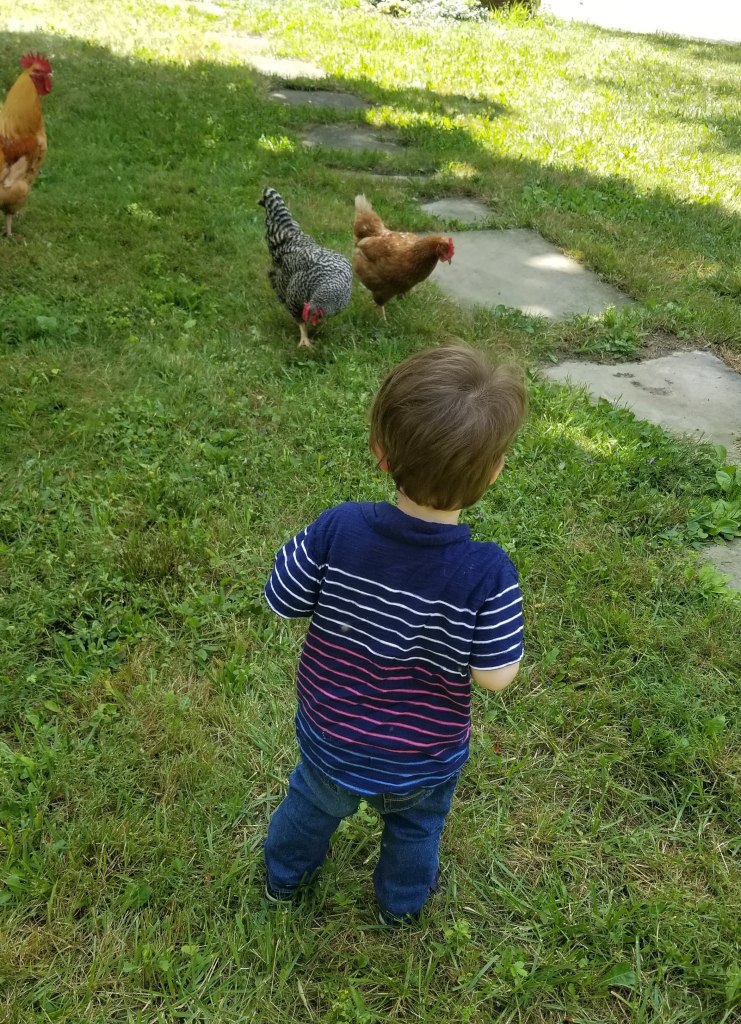 FW LOVED the chickens and goats. He was able to feed them both and follow them around for a while. He really enjoyed the farm and now of course I want some chickens!