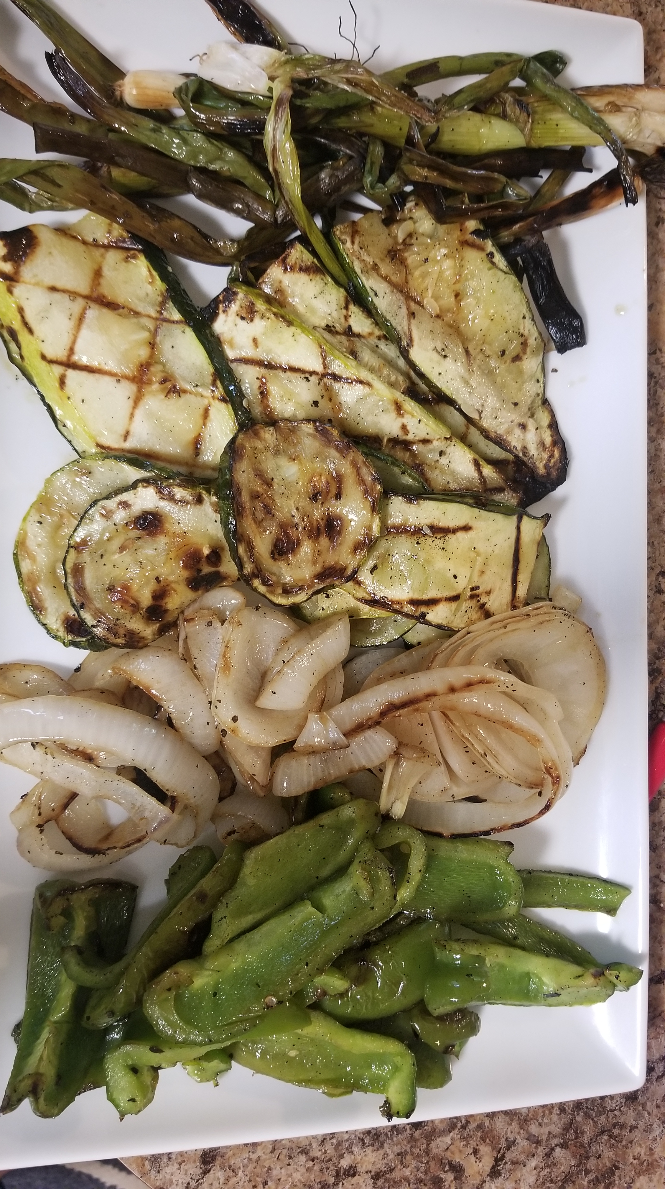 Saturday night, B grilled up some veggie burgers and veggies we had gotten at the Farmers Market. I love farm fresh meals in the summer!!