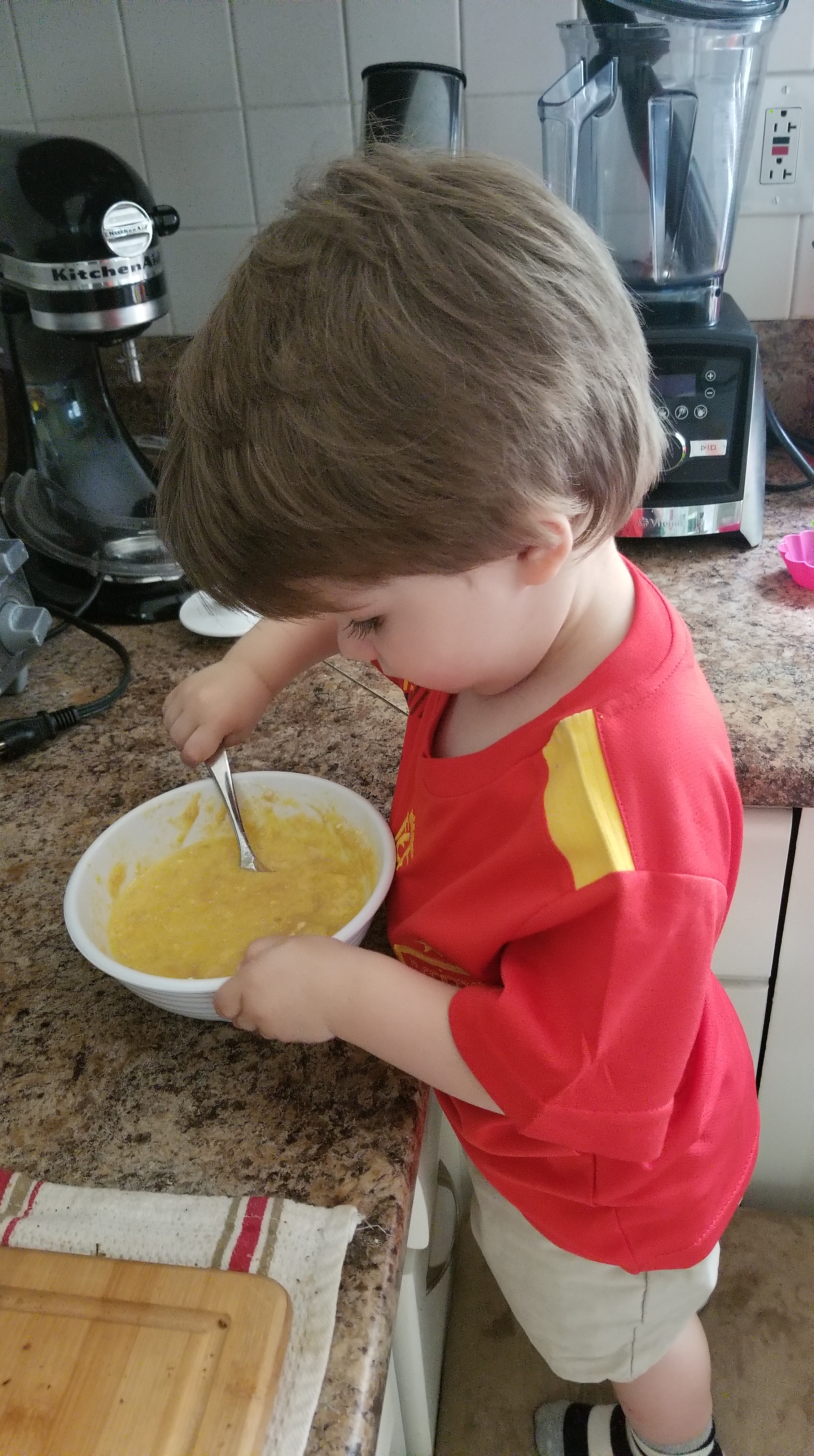 Sunday afternoon included some pancakes for FW. He even helped make them.