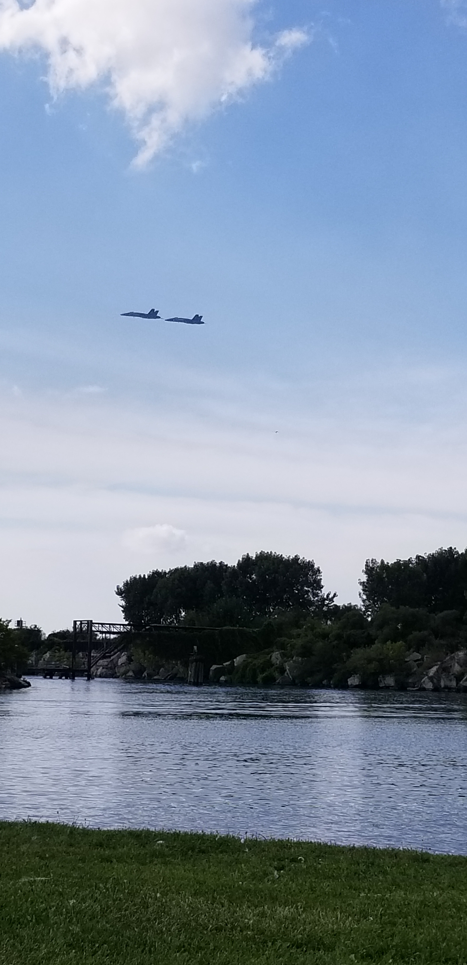 The afternoon included an impromptu trip to the lake to watch the annual Labor Day air show. We got there just in time to catch the Blue Angels! FW was amazed by the loud and fast planes.
