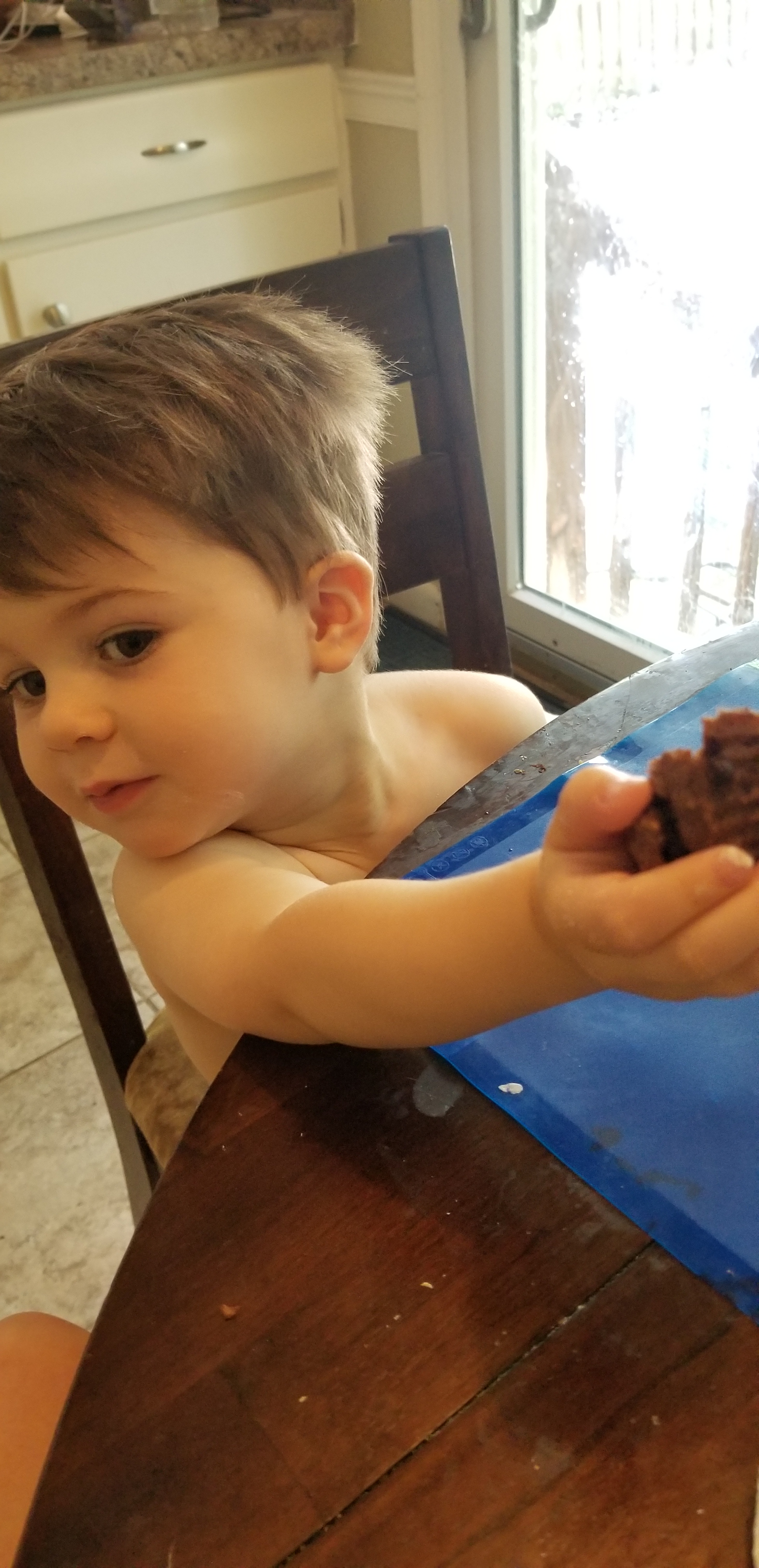 That afternoon, while B did some yard work, FW and I made muffins! He loves these chocolate chip banana lentil muffins.