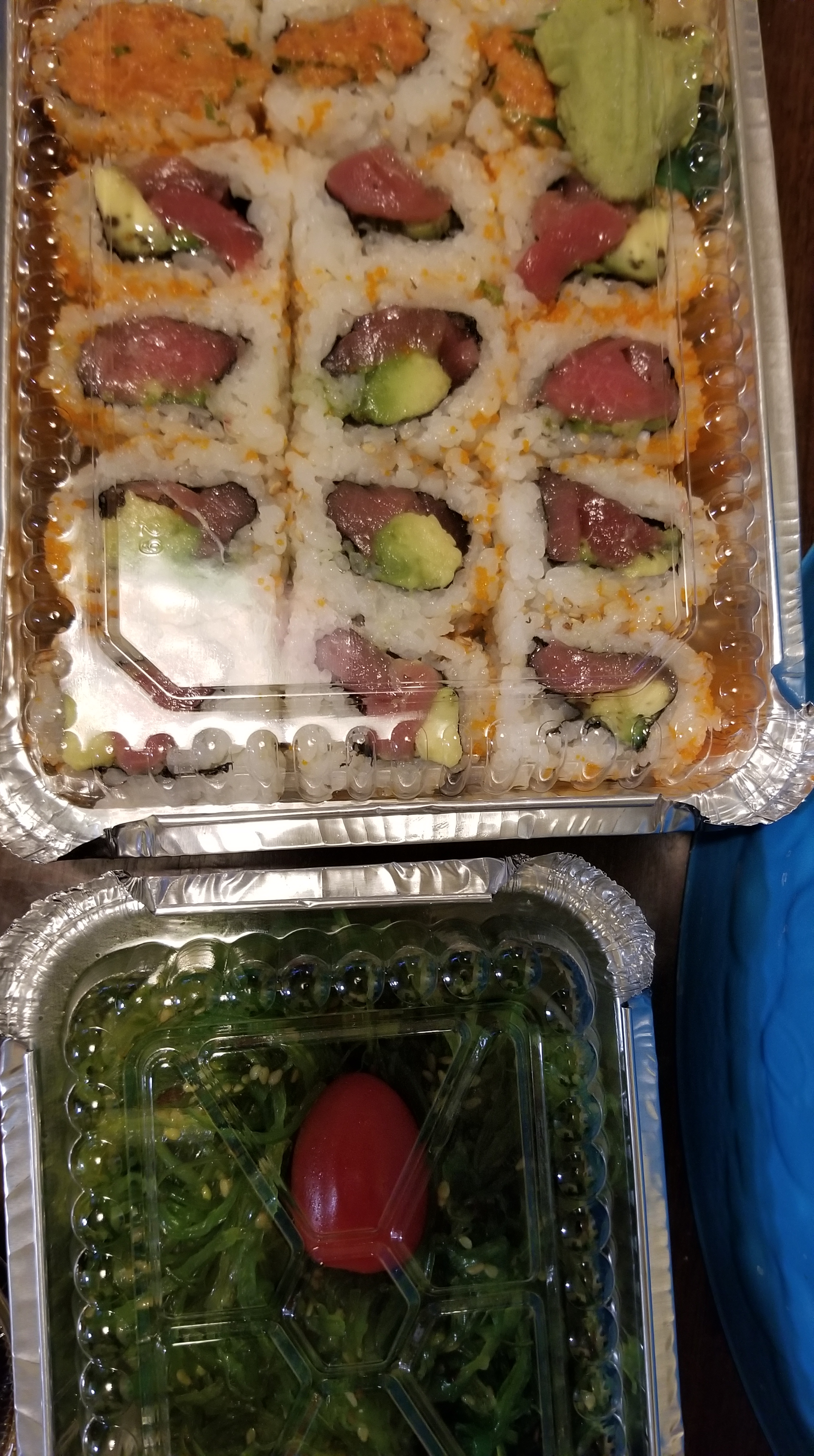 We started off the weekend with some sushi. Seaweed salad, a roll and some of my favorite sashimi for me.