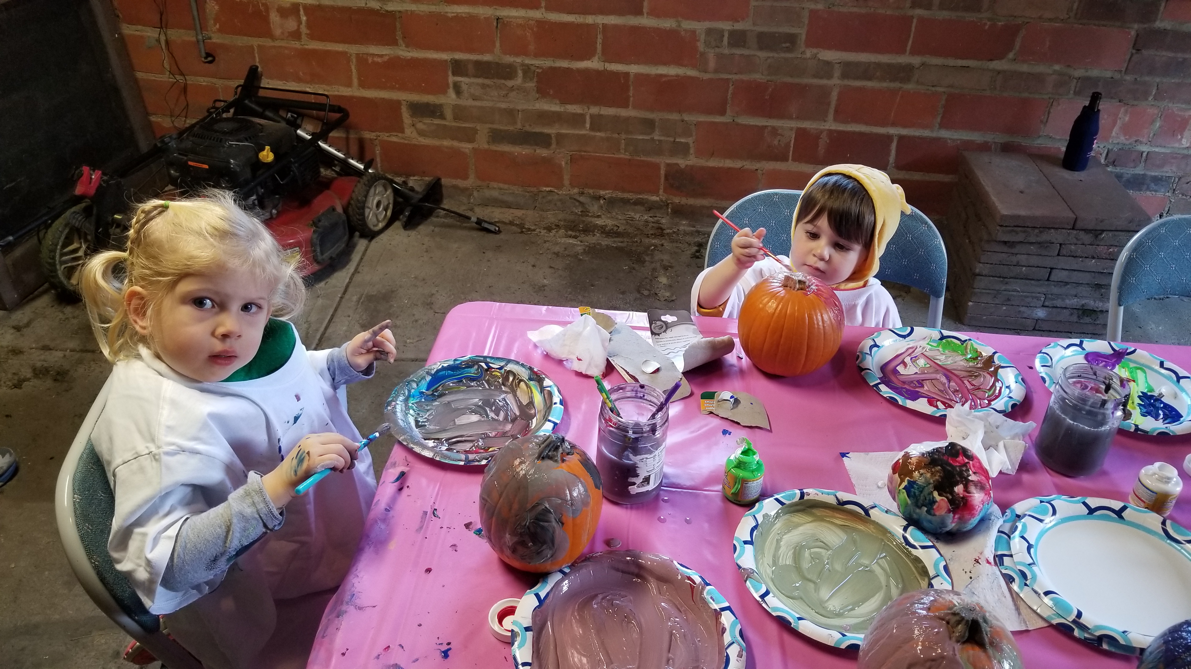 Saturday was Celia’s birthday party, which was also a costume party. FW put on his Winnie the Pooh outfit and had a blast – eating pizza and ice cream and decorating pumpkins.