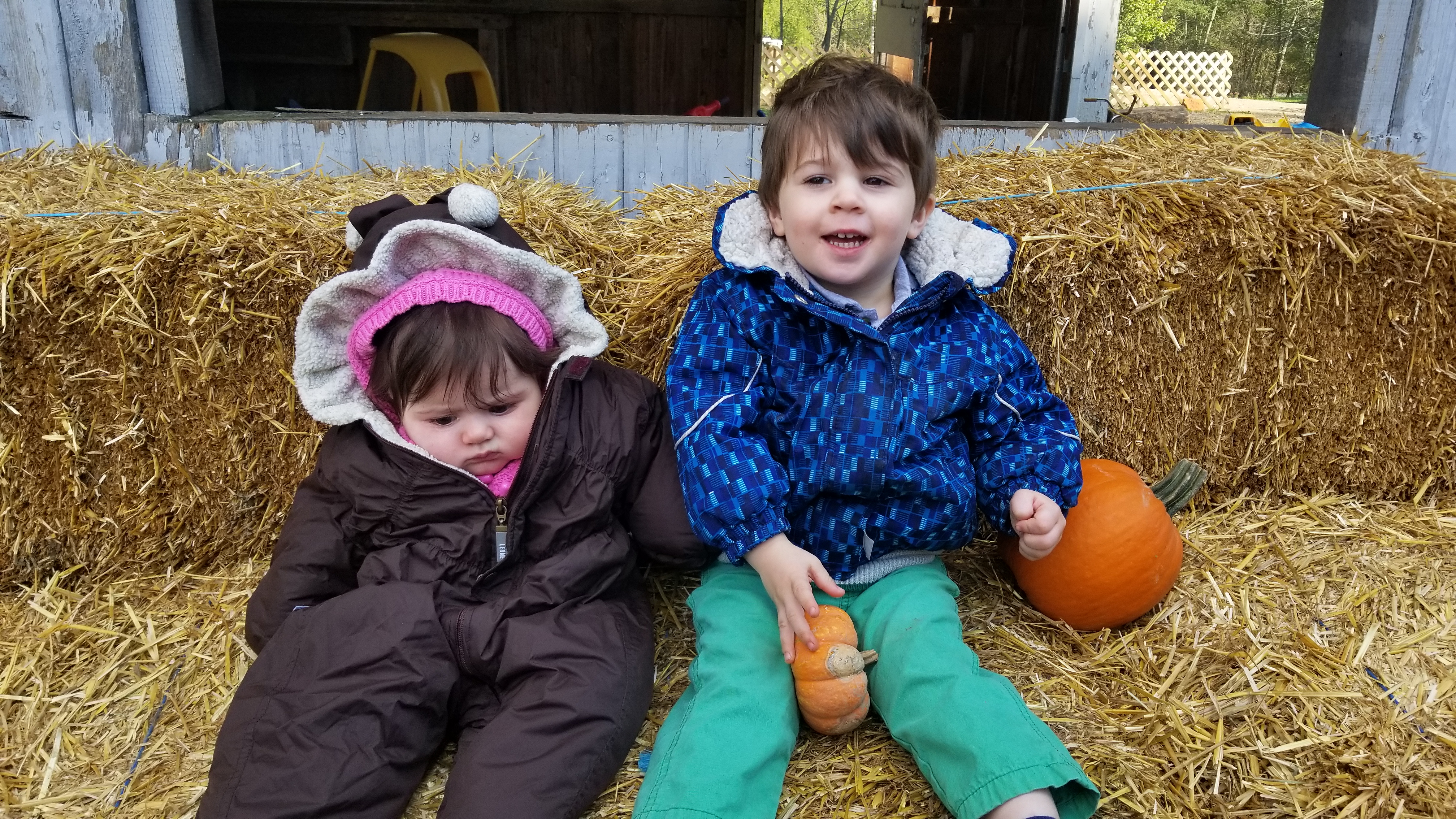 Then, we decided to stop by a nearby pumpkin patch. It was our first time there, and FW had a great time! We rode a hayride to get to the pumpkins, and then FW was able to run around and play with the toys on the farm.