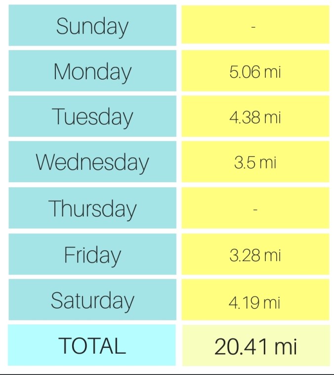 Monday was the best day – I actually got up and out of the house at a decent time (around 5:30 am), which means I had enough time to do 5 miles. And the 5 felt really good!