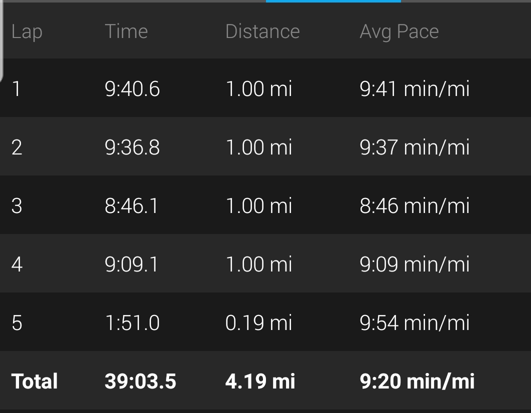 Monday was the best day – I actually got up and out of the house at a decent time (around 5:30 am), which means I had enough time to do 5 miles. And the 5 felt really good!