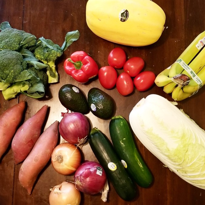 While I was at the event, B had said he would go shopping to get groceries for the week. Shortly after I got home, I found this was delivered from The Basketeria, one of our favorite stands in The West Side Market. I guess that’s one way to do it.