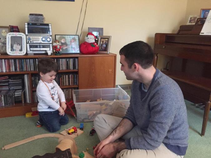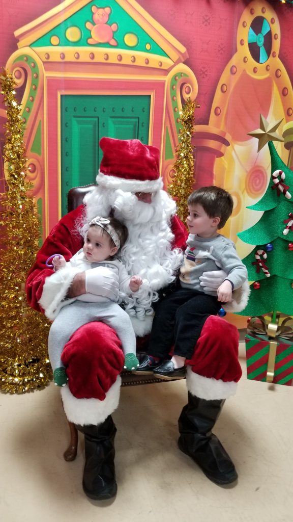FW and LM met Santa! He stopped by school last week and FW asked for some gifts (he asked for “presents.” When Santa prodded, he asked for “books and dinosaurs.”