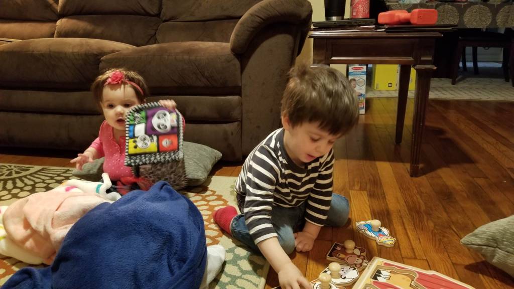 But this weekend, we got hit with snow. It started snowing Saturday morning and didn’t stop until Sunday. Thick, heavy snow. FW loved it — he couldn’t wait to go sleigh riding with his cousins. But for the most part we played it safe inside.