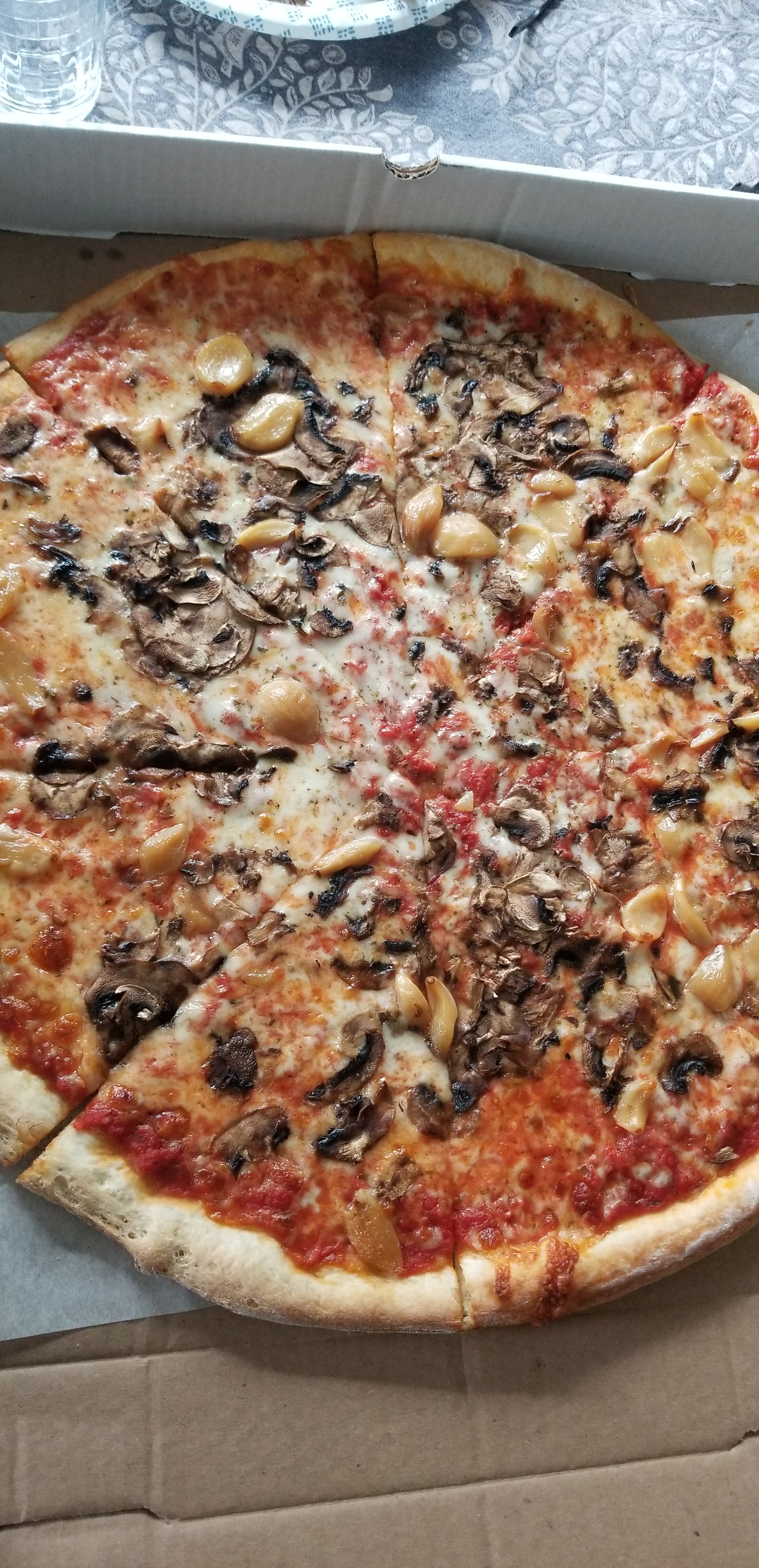 And then Friday night included pizza from our favorite local place – Marottas! They had been closed for renovations, but they reopened about a week ago. So yes, this was our second week of pizza pickup from them. I love roasted garlic on the pizza!
