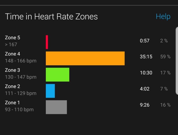 And take a look at the difference in Thursday and Saturday’s runs. Thursday was done at a slower pace, too – but check out the difference in heartrate!