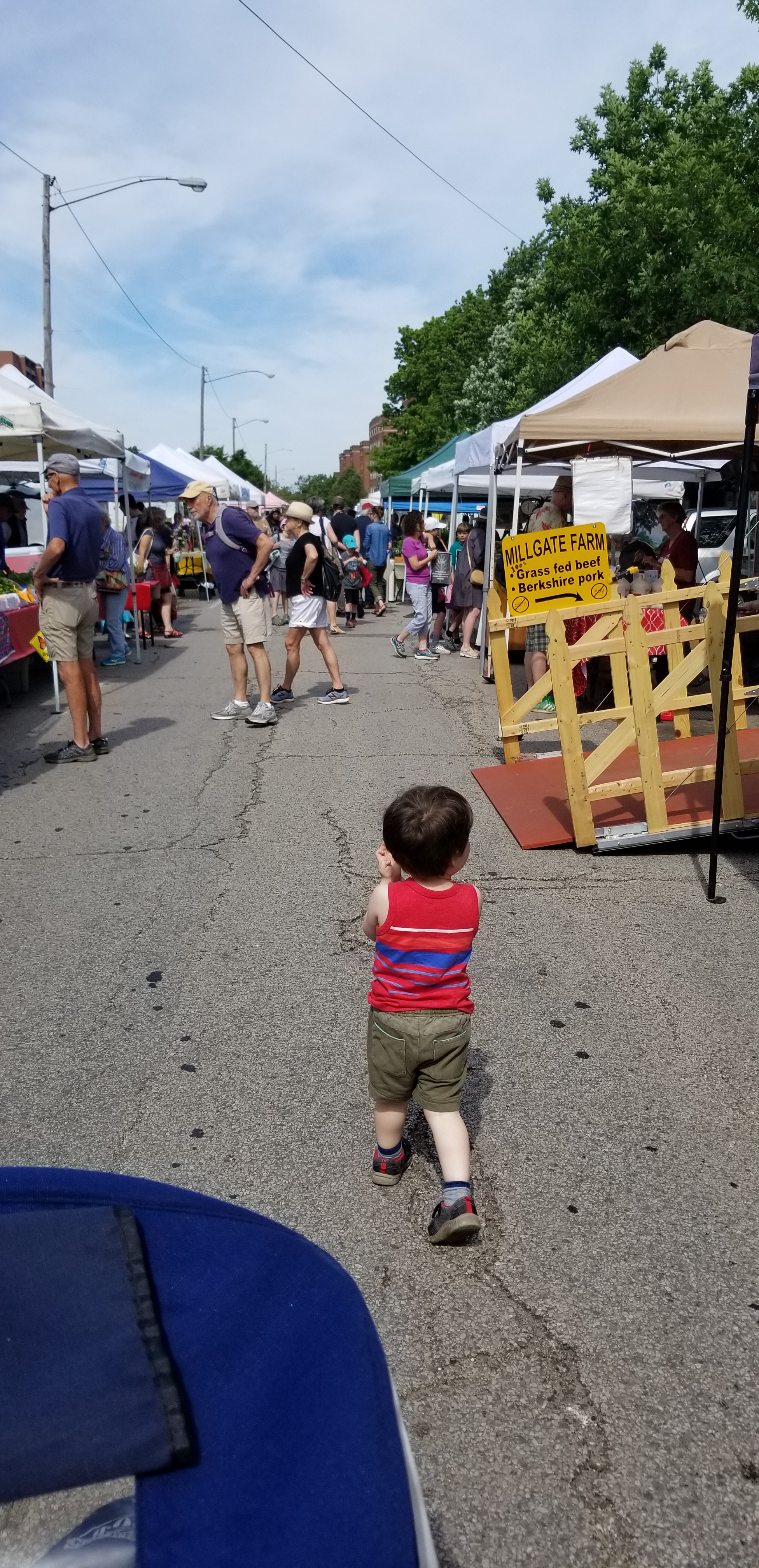 Saturday was another gorgeous day, so we spent most of the morning outside. It started with a stroller run and walk for LM and me – a little over 5 miles on a stroller-friendly path near our house – and then a run to the Farmers Market.