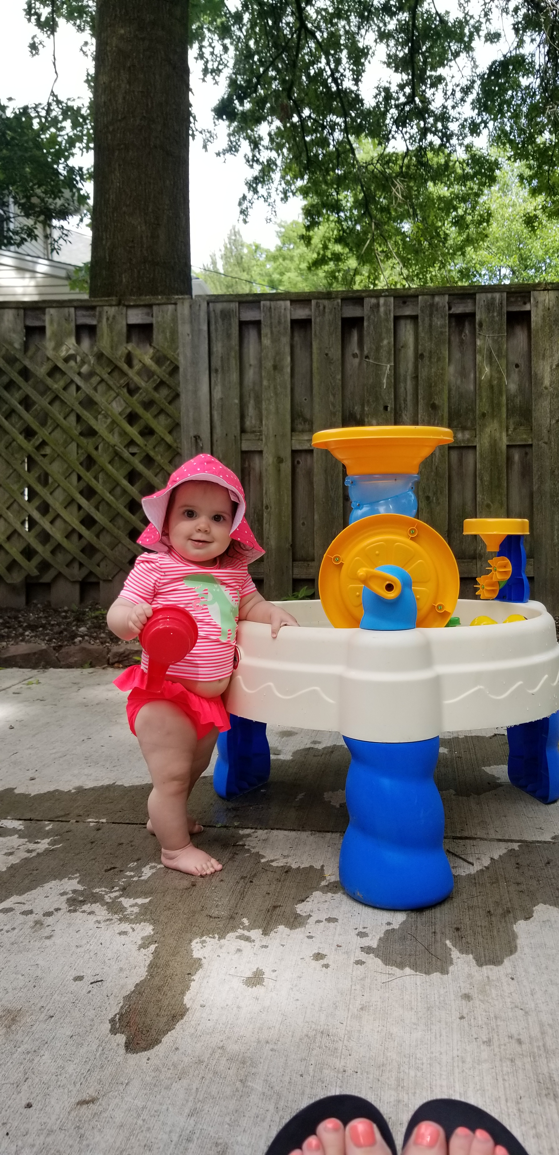 That afternoon included some more outdoor time – including playing with a water table and water gun! My friend Emily came over with her family – she has a 3 year old and almost 1 year old – for a little while, too.