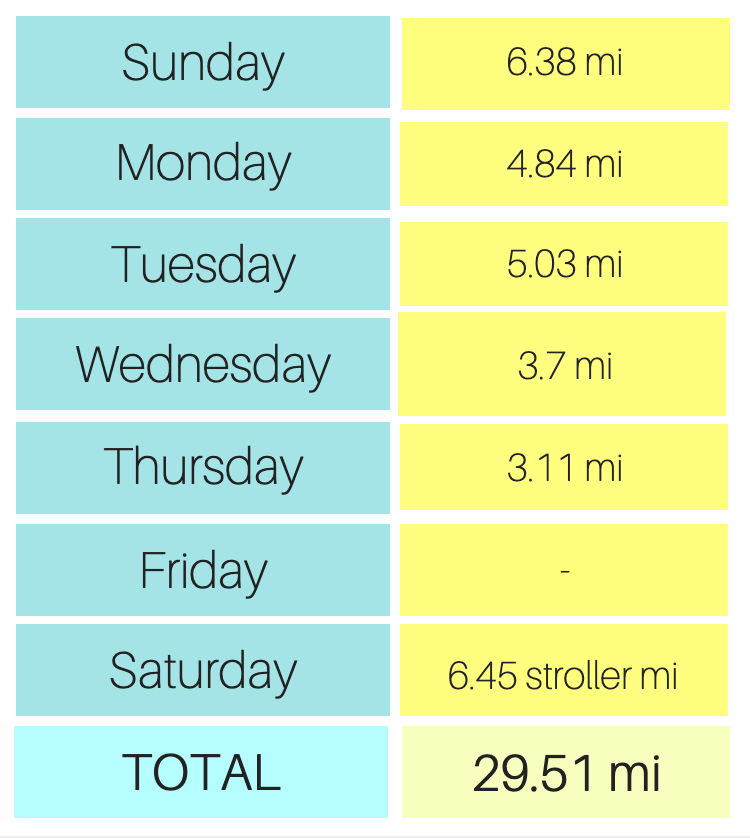 Hopefully my body can handle another week of 20+ miles – if this weather is here to stay, I wanna keep it up! Though I may need to take another day off – my feet and legs are sore.