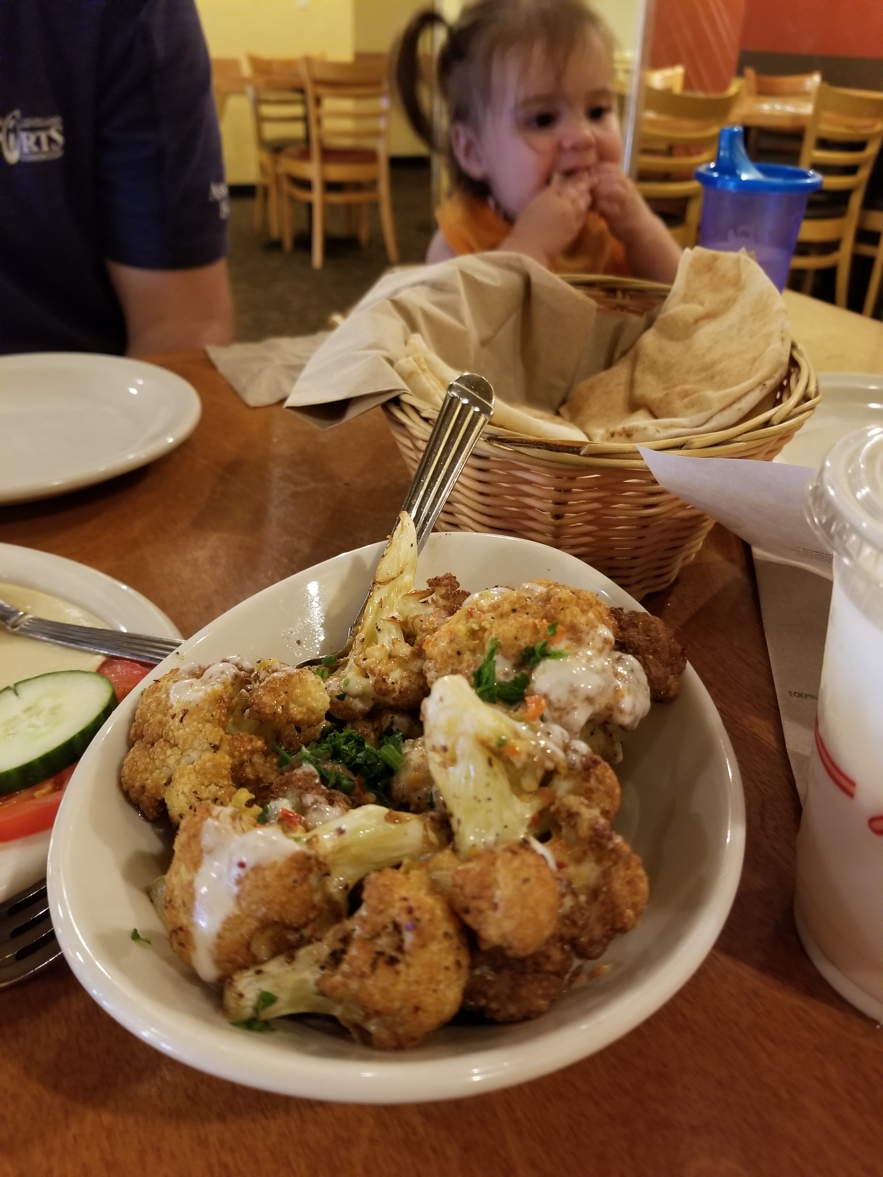 Friday night the four of us went out to dinner at Aladdin’s, a local Lebanese restaurant. As always, the food was amazing. I love their spicy cauliflower!