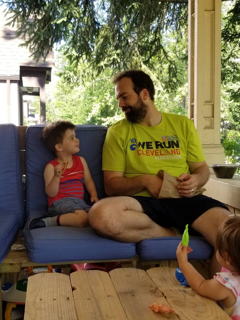 5 steamy miles later, FW and B were able to enjoy the treats on the front porch. AND B had made me breakfast!