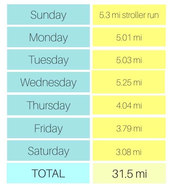 This week was a relatively high mileage week for me total — 31 miles! I haven’t seen 30 weekly miles since I was half marathon training a few months ago, but somehow I ended up hitting that number this week.