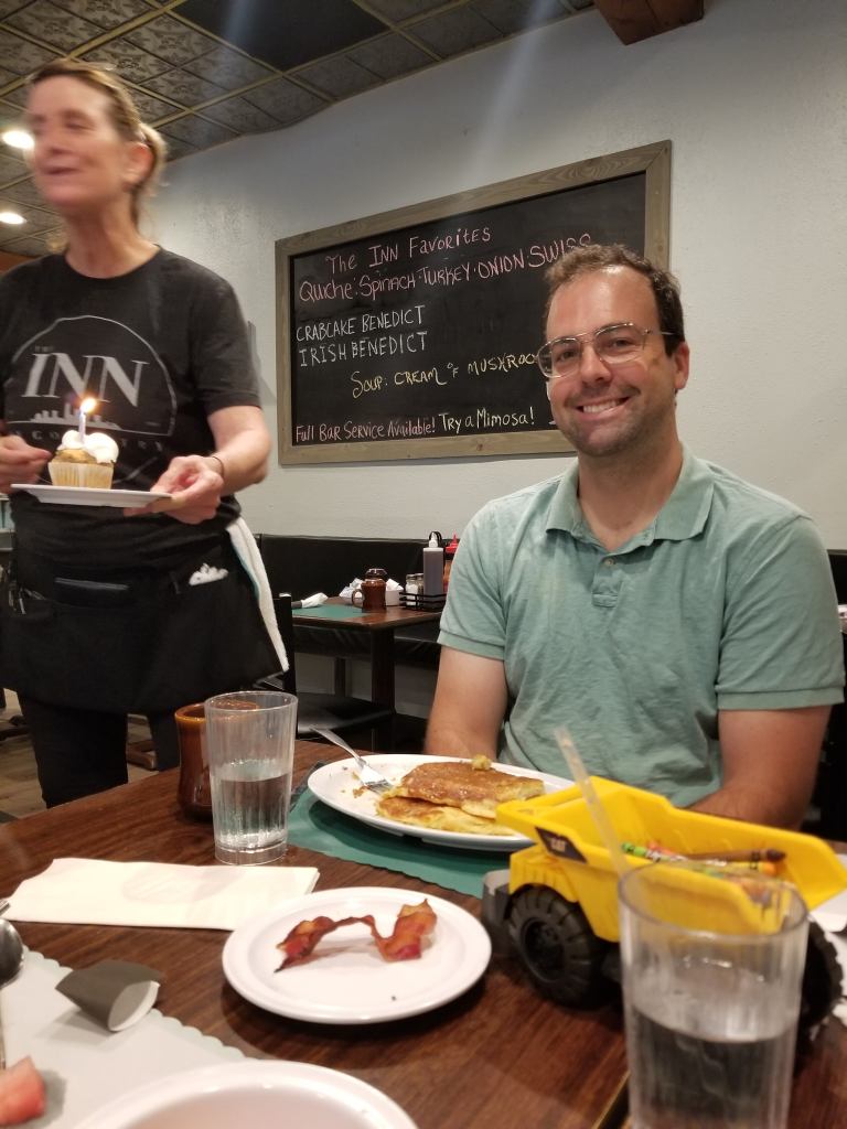 We went out to breakfast for B’s birthday on Friday! The restaurant sang him happy birthday and he got to blow out a candle on a muffin 🙂