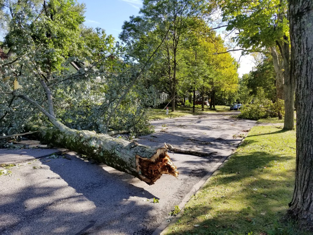You can’t tell from the photo, but my driveway is between that down tree and the down power line in the distance. We were stuck in our driveway for a bit on Saturday.
