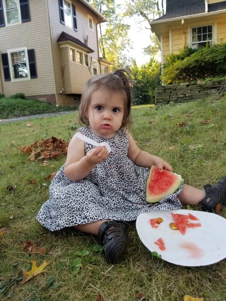 That didn’t stop us from having fun at our block party! LM enjoyed some watermelon.
