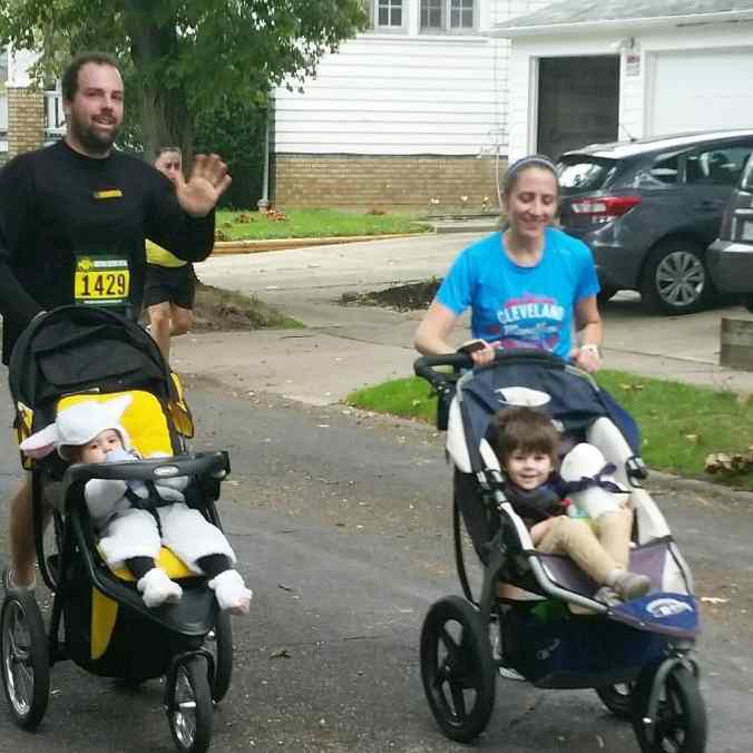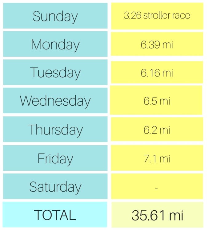 Sunday, before the step challenge started, we did a race with the whole family. I pushed FW and B pushed LM in the stroller and we did a local 5K.