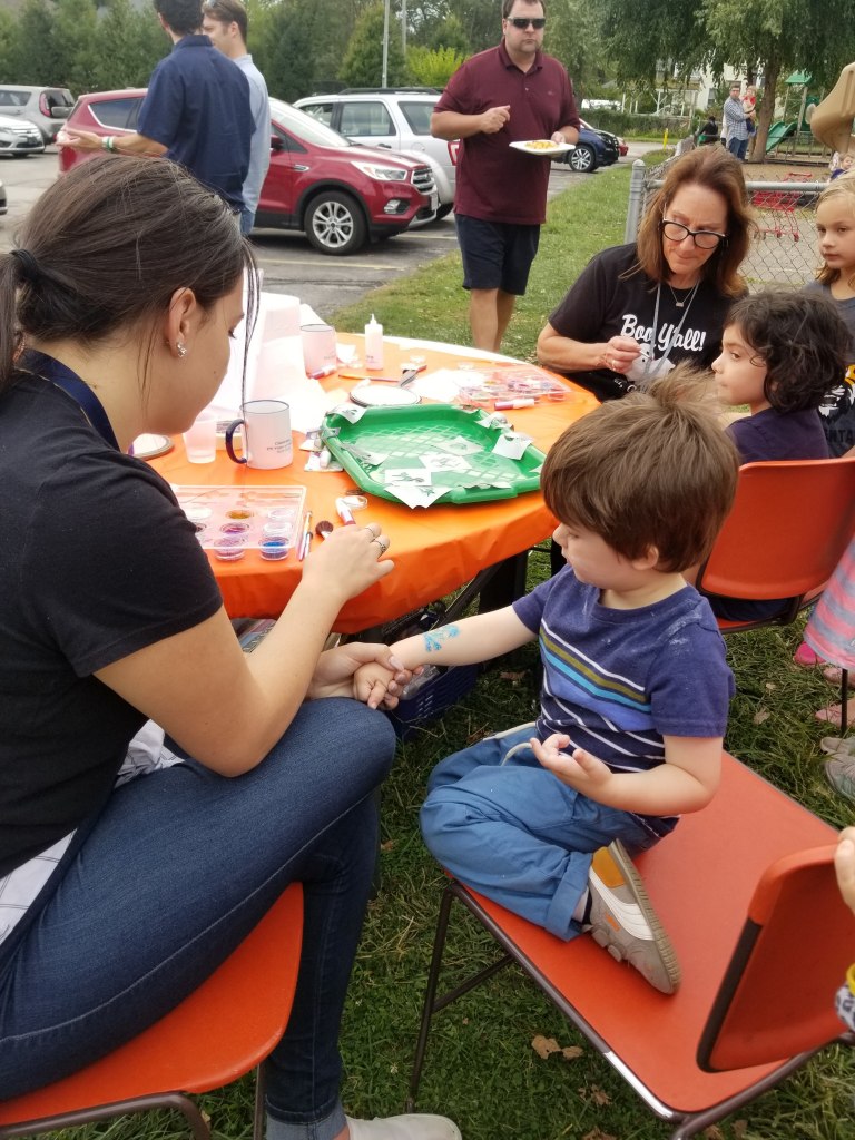 Friday started with Harvestfest at school. It meant bobbing for donuts (trying to eat a donut off a string without using your hands), getting sparkly tattoos, story time, a cookout and other kid-friendly activities.