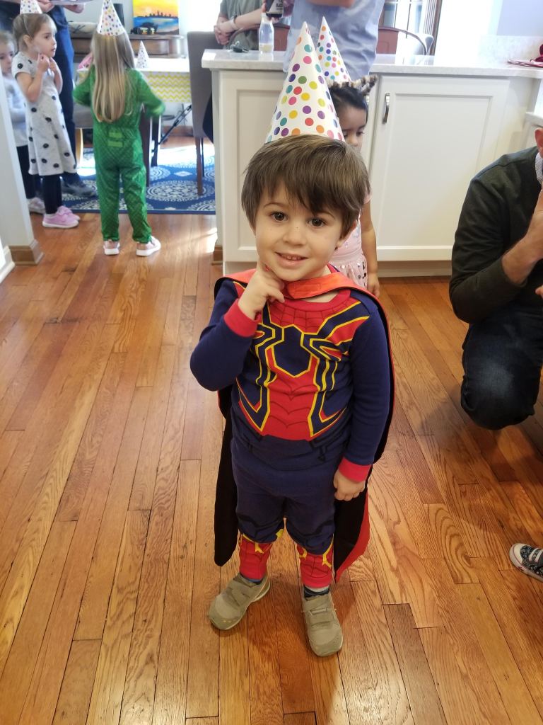 It was a costume party also, so FW wore his spiderman outfit and LM was a sheep.