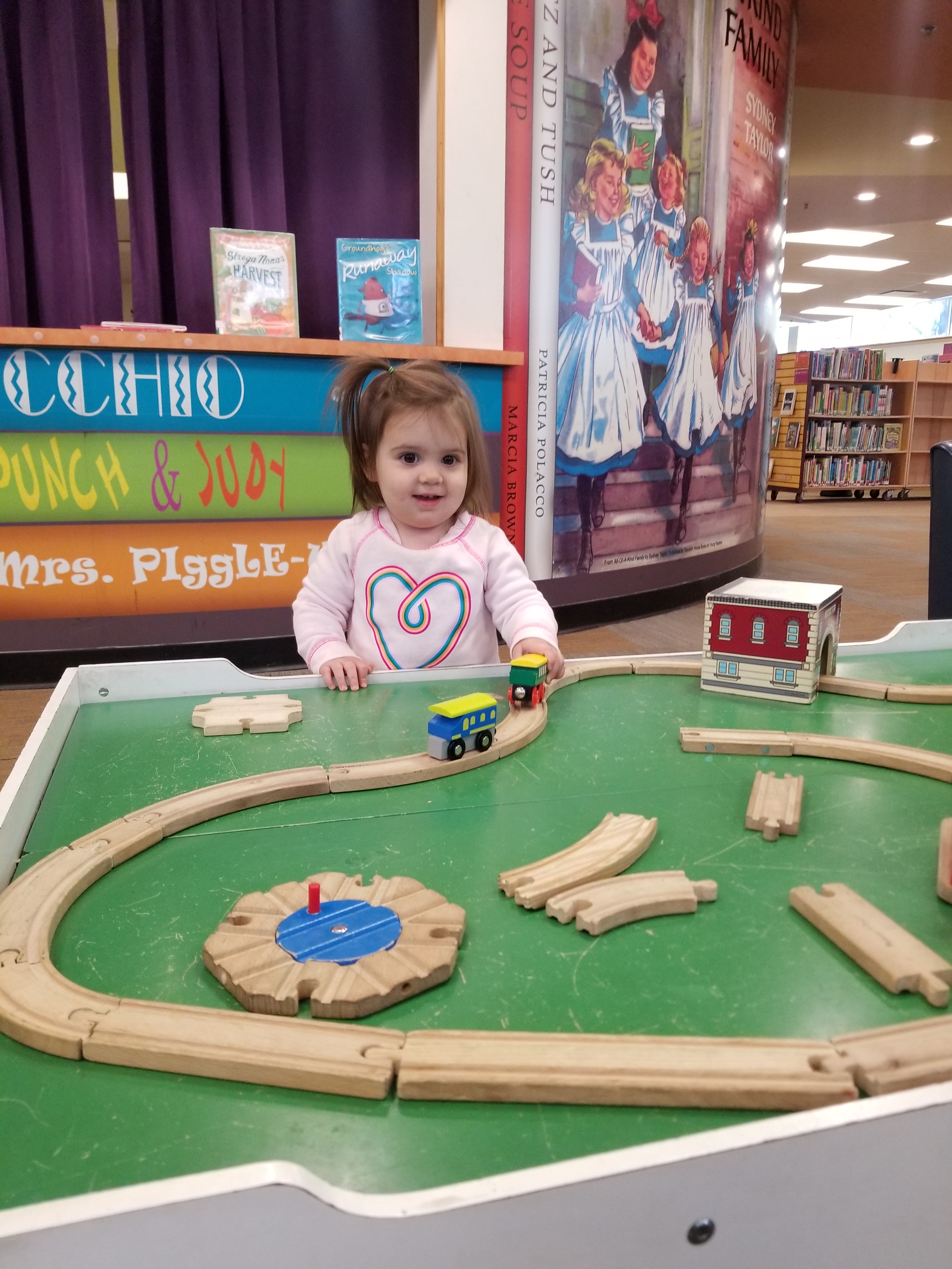 Saturday morning at the library. We enjoyed playing with trains and some story time.